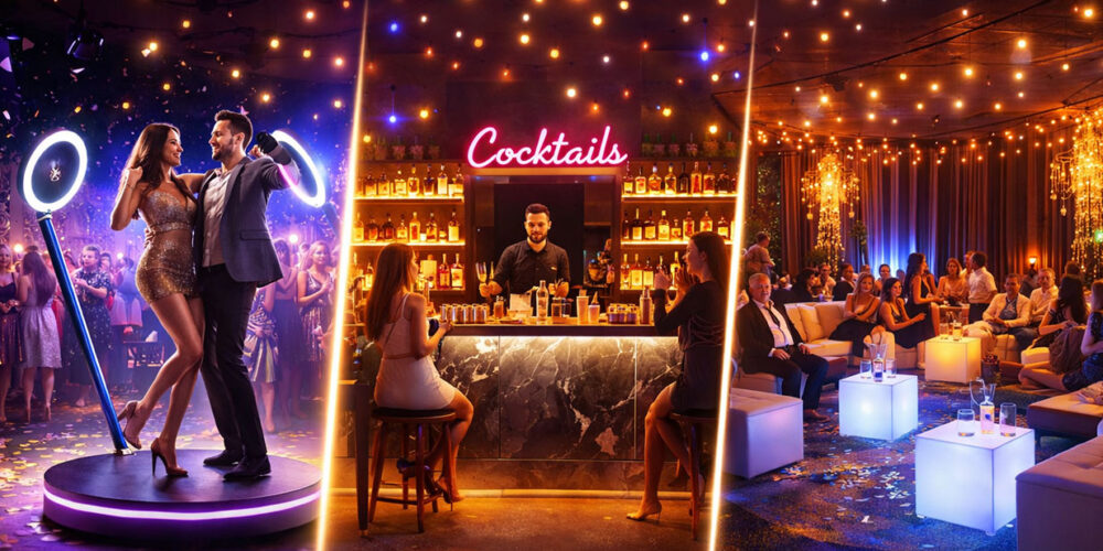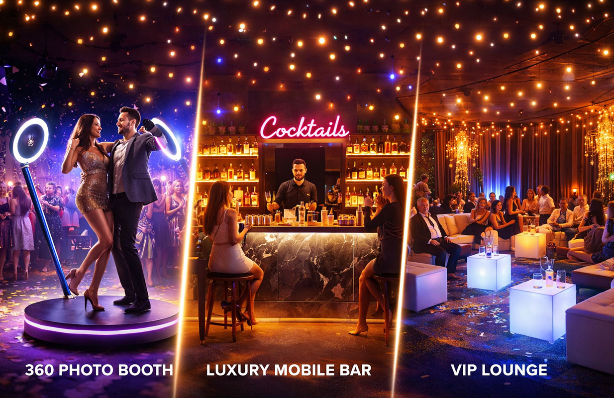Our solutions include 360 photo booths, mobile bar setups, and custom activity stations that encourage guest participation. These elements help create a more engaging environment and add variety to your event setup.